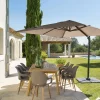 Parfait pour ombrager les grands espaces extérieurs, le parasol déporté ELEA conjugue élégance contemporaine et fonctionnalité. Il crée une zone d’ombre généreuse sur une terrasse, autour d’un salon de jardin ou près de la piscine, tout en s’adaptant à l’ensoleillement grâce à sa toile inclinable. Avec son allure moderne et sa large couverture, ELEA transforme votre extérieur en un véritable havre de fraîcheur et de confort.